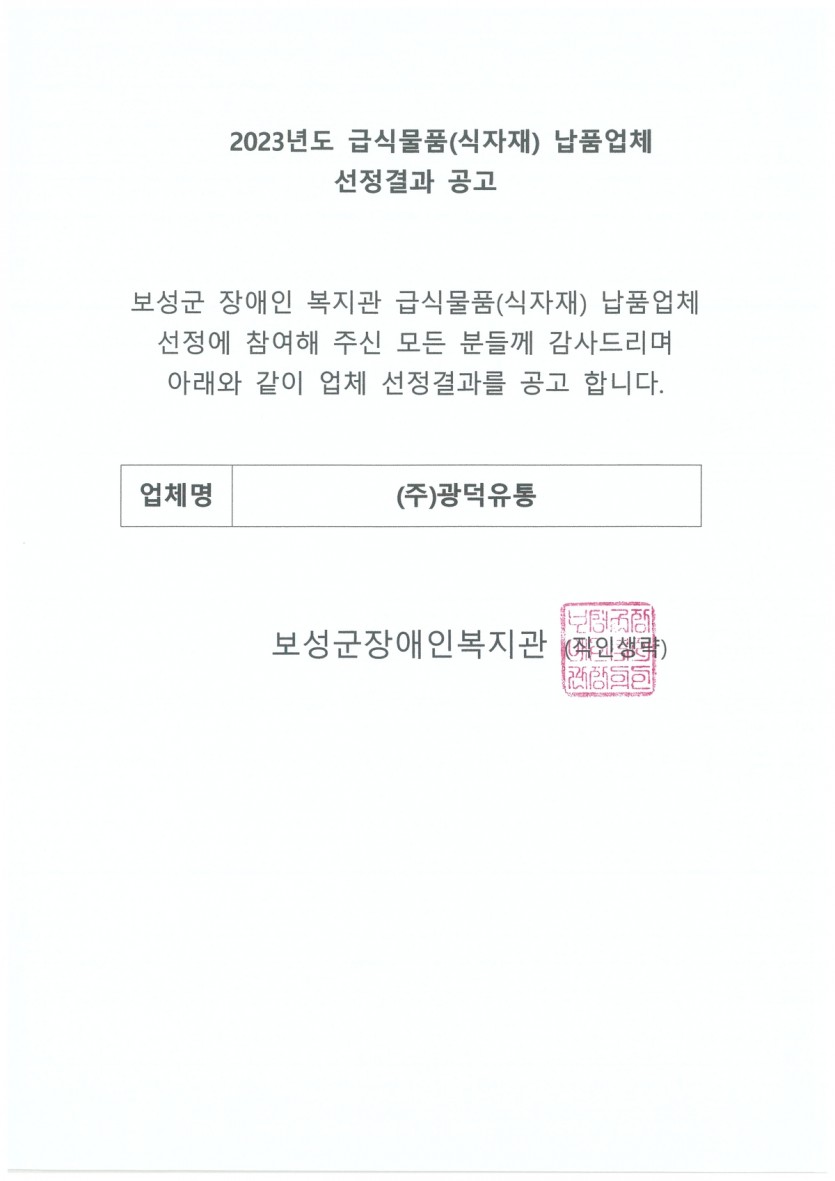 2023년 급식물품(식자재) 남품업체 선정결과 공고 작성자 정보 나영은 작성 작성일 2023.05.24 09:10 컨텐츠 정보 2,922 조회 목록 본문 관련자료 이전 발달장애인 긴급돌봄서비스 신청안내 작성일 2023.05.24 14:25 다음 2023년 급식물품(식자재) 납품업체 선정 입찰 공고 작성일 2023.05.03 10:00 댓글 0개 등록된 댓글이 없습니다. 로그인한 회원만 댓글 등록이 가능합니다. 목록
